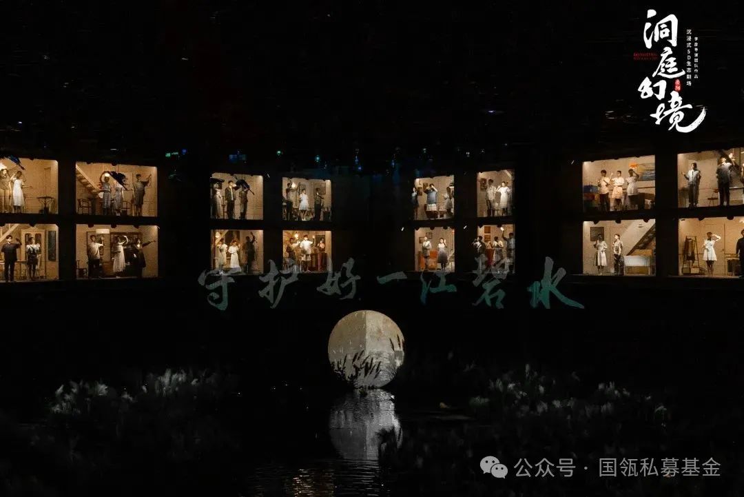 这部由湖南旅游集团、岳阳市城投集团、明和集团、如是创艺联合打造的国内首个5D生态剧场,邀请到国内知名文艺先锋导演李彦担任总导演。《洞庭幻境》渔村剧场的故事背景设定在湖南省启动洞庭湖区渔民上岸定居工程的关键节点。观众穿梭于琉璃荷境,感受“船行莲叶间”的诗意;在渔村灯火中,触摸渔民生活的烟火气息;并以客人的身份参与一场渔民“起鱼节宴”,目睹芦苇晨雾、江豚拜风、候鸟欢歌的自然奇观,体会自然生灵与人类和谐共处的美好。