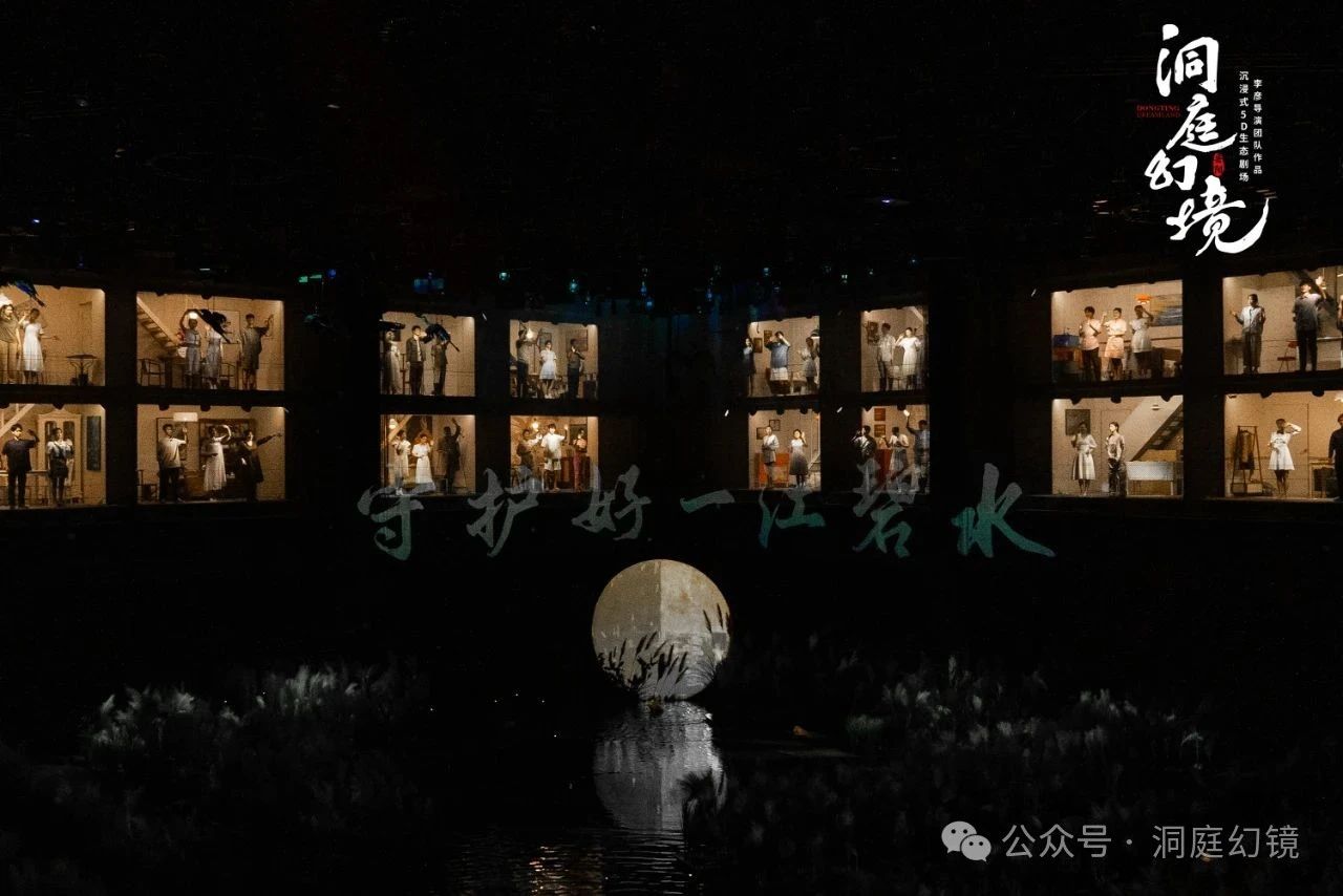 作为第四届湖南旅发大会的重磅项目,国内首个5D生态剧场《洞庭幻境》由中共岳阳市委宣传部指导,湖南旅游集团、岳阳市城投集团、明和集团、如是创艺联合出品。文艺先锋导演李彦团队以洞庭湖生态美学为创作核心,融合新媒体艺术、机械装置及非线性戏剧等表现形式,成功构建起中国最大室内生态数控矩阵与渔村戏剧群落。